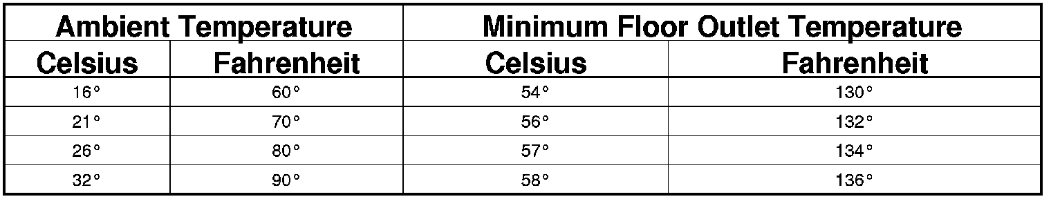 Engine coolant is delivered to and from the heater core through two heater hoses. With the engine idling at normal operating temperature, set the temperature control to the full hot position, the mode control to the floor position, and the blower motor control to the highest speed position. Using a test thermometer, check the temperature of the air being discharged at the front floor outlets. Compare the test thermometer reading to the Heater Temperature Reference chart.