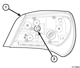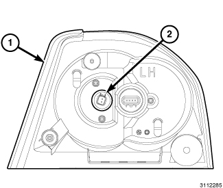 3. Align the socket and bulb with the keyed opening on the back of the rear lamp unit (1) housing.