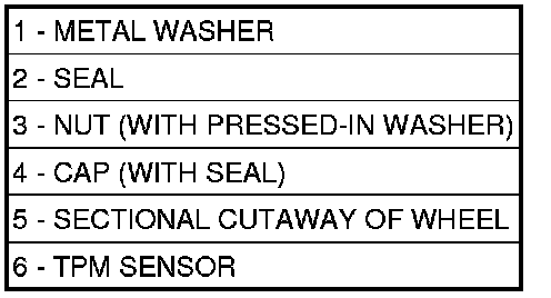 NOTE: Any time a sensor is installed on a wheel, a new Sensor-To-Wheel Seal (2), Metal Washer (1) and Valve Stem Nut (3) must be installed to ensure air tight sealing. A service kit is available.