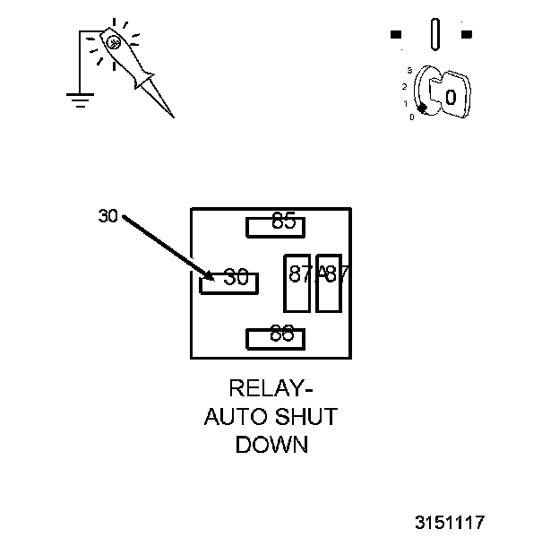 1. Using a 12-Volt test light connected to ground, probe the (A935) Fused B+ circuit at the ASD/Main Relay terminal.