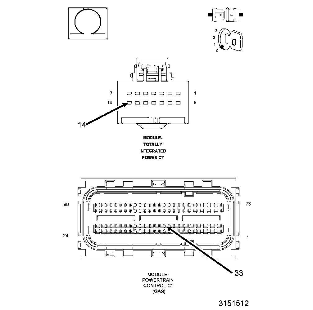 2. Using a 12-Volt test light connected to ground, probe the (F202) Fused Ignition Switch Output circuit in the PCM C1 harness connector.