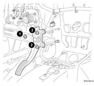 1. Install the accelerator pedal and mounting nuts to the mounting studs. Tighten the nuts in a mandatory torque sequence to 16 Nm (12 ft. lbs.).