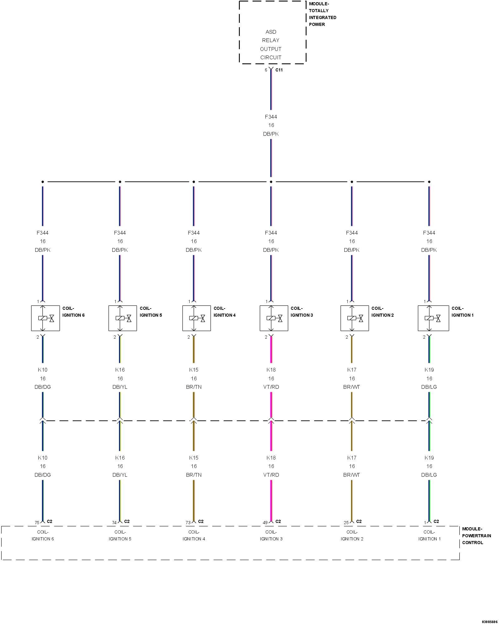 5. Using a 12-Volt test light connected to ground, check the ASD Relay output circuit in the ignition coil harness connector.