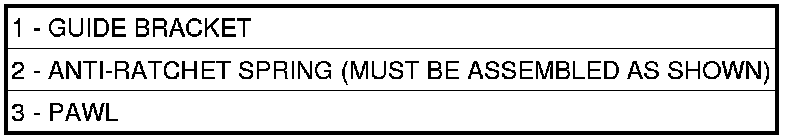 6. Park guide bracket assembly - anti-ratchet spring (1)(Figure 6), guide bracket (2), split sleeve (3), spacer (4), pawl (5), and stepped spacer (6).