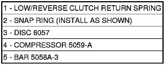 11. Install low/reverse spring compressor Disc (3)(Figure 11), Compressor (4) and Bar (5) into position.