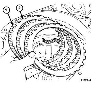 42. Install low/reverse clutch pack (1,2)(Figure 39). Leave uppermost disc out until snap ring is installed.