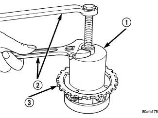 61. Remove rear carrier assembly (3) bearing cone using Puller Set with Jaws and Button (Figure 57).