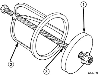 30. Using Compressing Tool (1), compress 2/4 clutch return spring just enough to install snap ring (3).