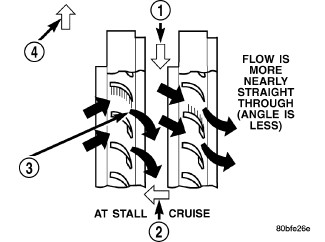 Torque multiplication is achieved by locking the stator's over-running clutch to its shaft. Under stall conditions (the turbine is stationary), the oil leaving the turbine blades strikes the face of the stator blades and tries to rotate them in a counterclockwise direction. When this happens the over-running clutch of the stator locks and holds the stator from rotating. With the stator locked, the oil strikes the stator blades and is redirected into a "helping" direction before it enters the impeller. This circulation of oil from impeller to turbine, turbine to stator, and stator to impeller, can produce a maximum torque multiplication of about 2.4:1. As the turbine begins to match the speed of the impeller, the fluid that was hitting the stator in such as way as to cause it to lock-up is no longer doing so. In this condition of operation, the stator begins to free wheel and the converter acts as a fluid coupling(Figure 2).