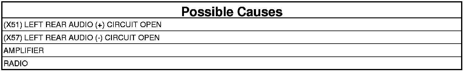 - Repair open in the (X57) Left Rear Audio (-) circuit.