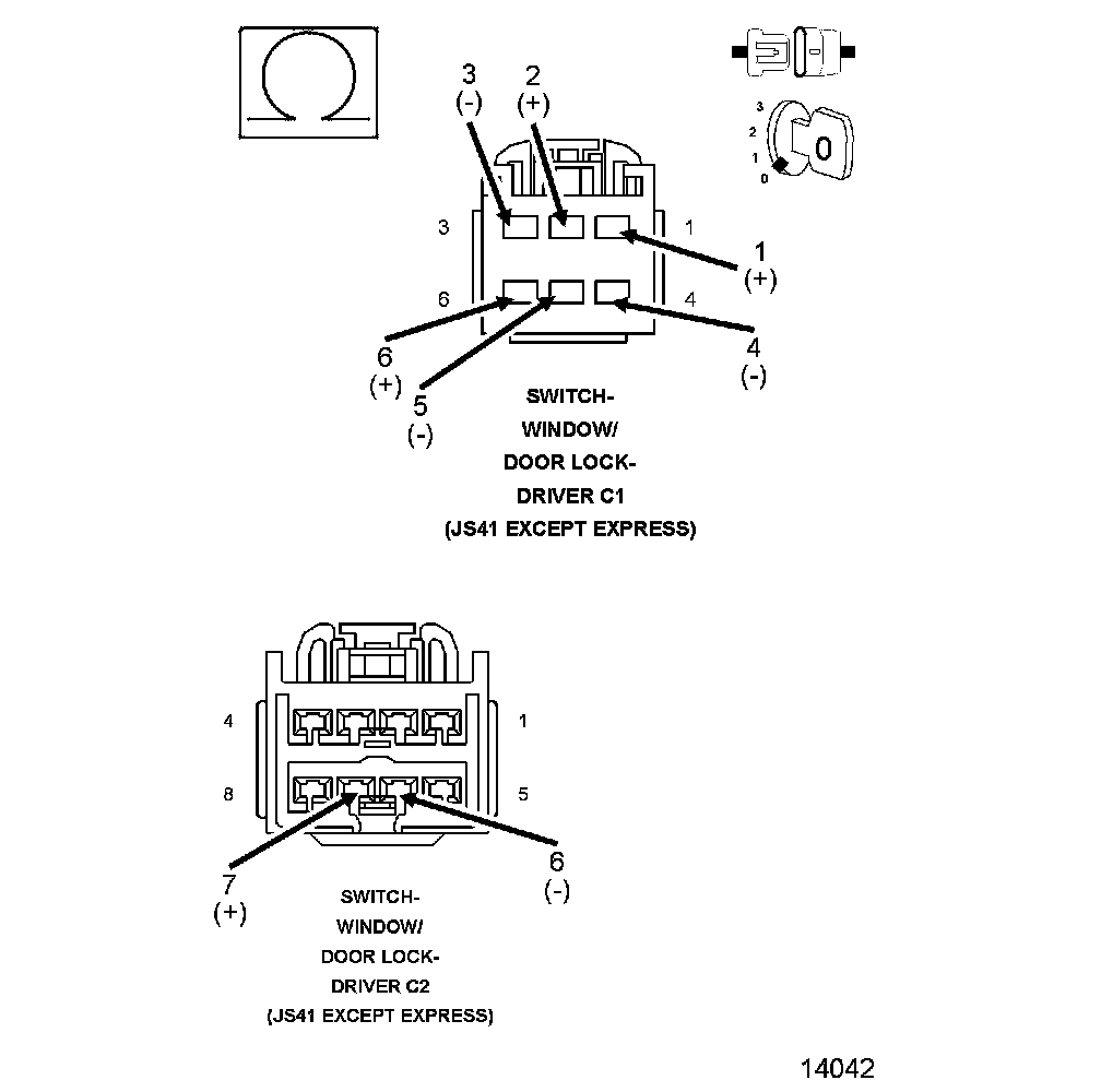 NOTE: The schematic shows just the Left Rear Window Motor circuit for JS 41 Base only. The other Passenger Window Motor circuits are similar. For the JS Express Up or the JS 27 schematics, see the Wiring Diagrams.