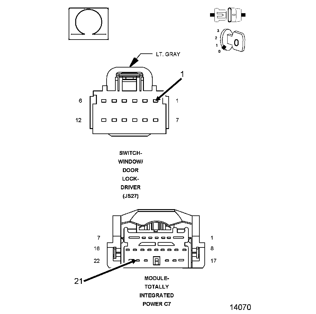 NOTE: For a Right Hand Drive Vehicle, refer to the master schematic, in the Wiring Diagrams, for correct connector pinouts.