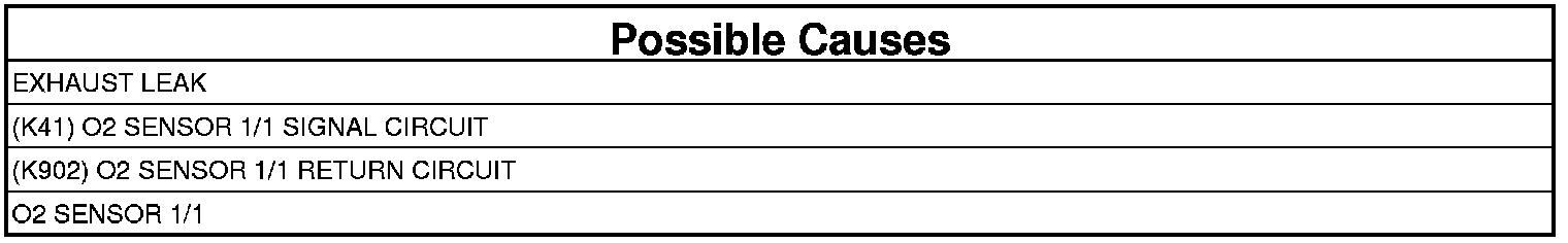 - Check the (K41) O2 Sensor 1/1 Signal circuit for a short to ground, open, or short to voltage. If OK, replace and program the Powertrain Control Module.
