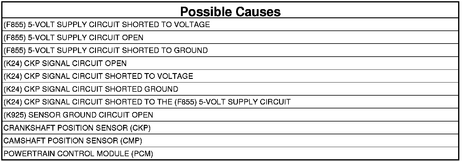- Repair the short to voltage in the (K24) CKP Signal circuit.