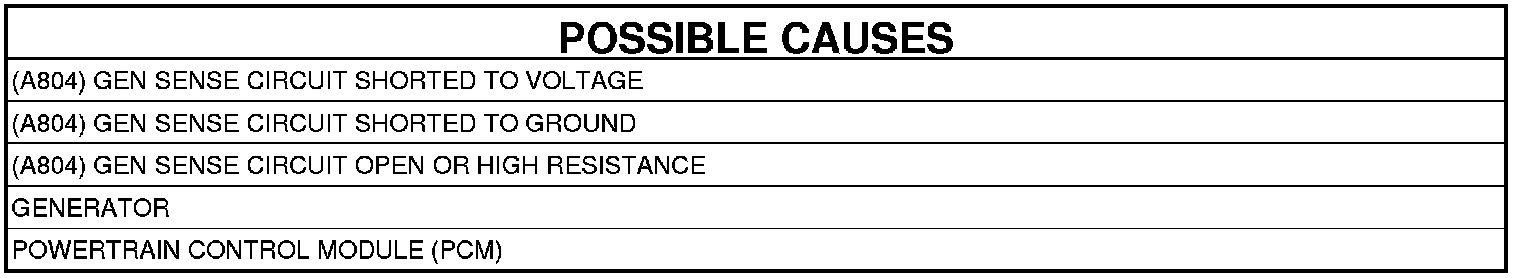 - Repair the (A804) Gen Sense circuit for a short to voltage.
