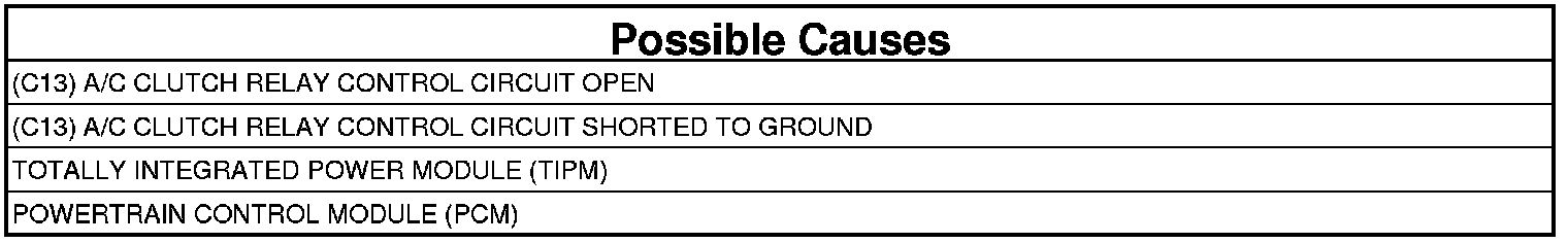 - Repair the short to ground in the (C13) A/C Clutch Relay Control circuit.