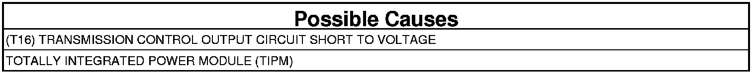 - Repair the short to voltage in the (T16) Transmission Control Output circuit.