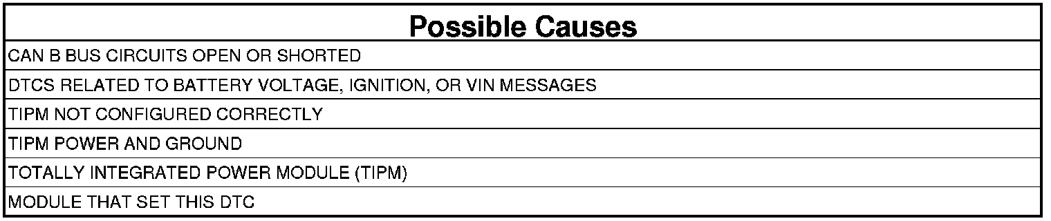 NOTE: Check for TIPM configuration, CAN B or C hardware electrical, VIN Missing/Mismatch, battery or ignition related DTCs.