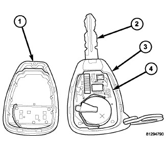 Each ignition key (2) used in the Sentry Key Remote Entry System (SKREES), sometimes referred to as the Sentry Key Immobilizer System (SKIS) has a transponder chip included on the circuit board (4) beneath the cover (1) of the integral Remote Keyless Entry (RKE) transmitter (3). In addition to having to be cut to match the mechanical coding of the ignition lock cylinder and programmed for operation of the RKE system, each new Sentry Key has a unique transponder identification code that is permanently programmed into it by the manufacturer, and which must be programmed into the Sentry Key REmote Entry Module (SKREEM), sometimes referred to as the Wireless Control Module (WCM), to be recognized by the SKREES/SKIS as a valid key.