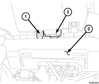 3. Install the trim piece (3) in front of the Hands Free Module (HFM).