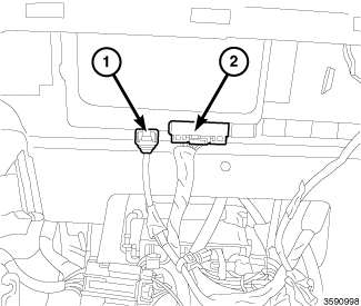1. Connect the electrical connector (2) to the HFM and the USB connector (1) if equipped.