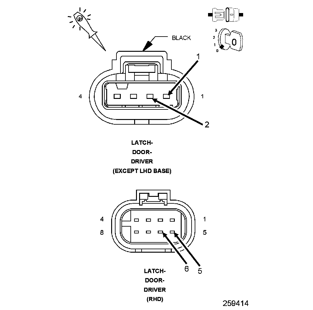 NOTE: This test does not cover a secondary latch problem on a right hand drive (RHD) vehicle.