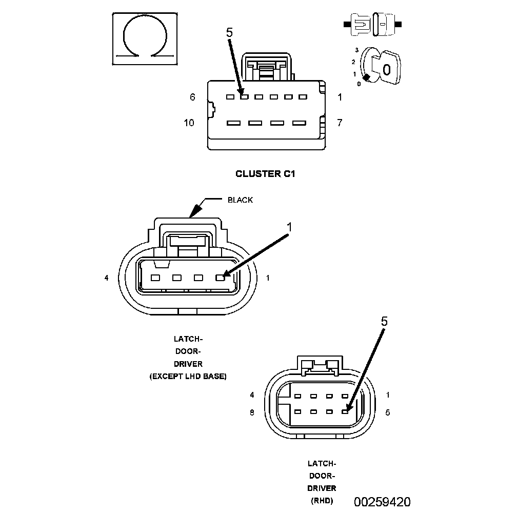 5. (P238) DRIVER DOOR UNLOCK DRIVER WIRE OPEN