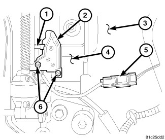 1. Position the tonneau retracted limit switch (2) onto the four bar linkage (4). Ensure the switch sensing tab (1) is located properly so that the screw drive assembly makes contact with the tonneau cover fully retracted.