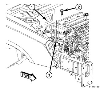 23. Position the heat shield (3) onto the studs (2) located on the dash panel in the engine compartment.