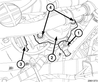 1. Position the vacuum pump assembly (1), ensuring that the two ground leads are in place while installing bracket mounting bolts (2). Tighten bolts to 55 Nm (41 ft. lbs.).