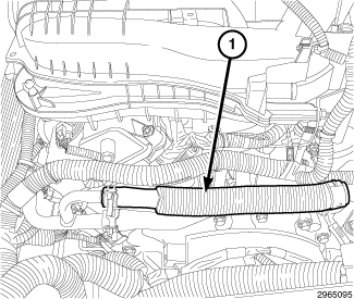 31. Engage the wire harness retainer (1) to the engine block.