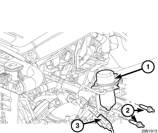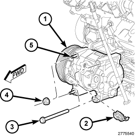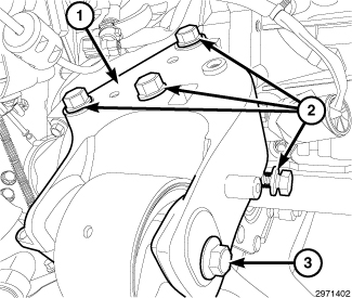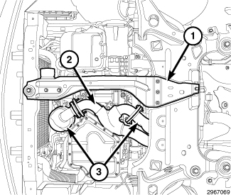 25. Install the bolt (3) to the rear engine mount isolator and tighten to 61 Nm (45 ft. lbs.).
