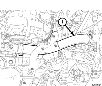 73. Install the upper radiator hose (1).