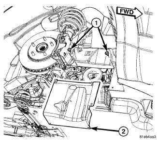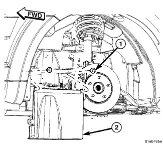 50. Install the left lower splash shield (2).