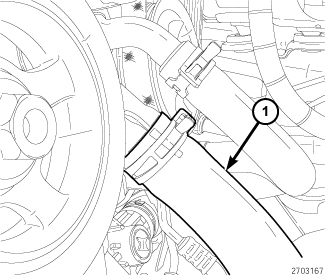 42. Install the lower radiator hose (1).