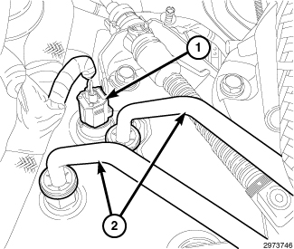 27. If required, install the heater core supply tube (1) with two bolts (2) and tighten to 12 Nm (106 in. lbs.).