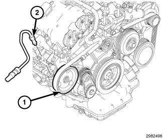 5. Install the pressure hose (2) at the pump pressure port. Tighten the tube nut to 32 Nm (24 ft. lbs.).