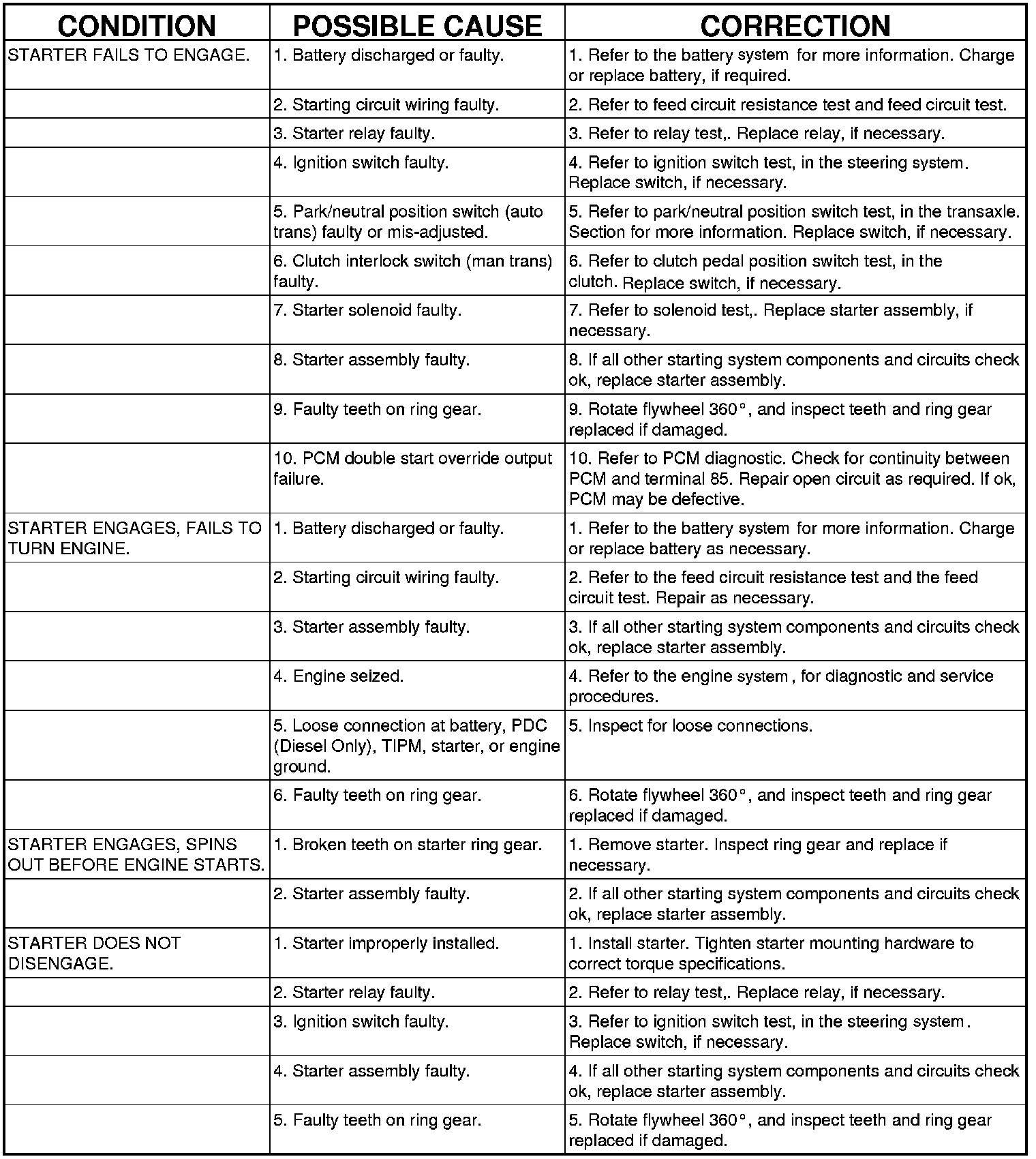 Before removing any unit from the starting system for repair or diagnosis, perform the following inspections: