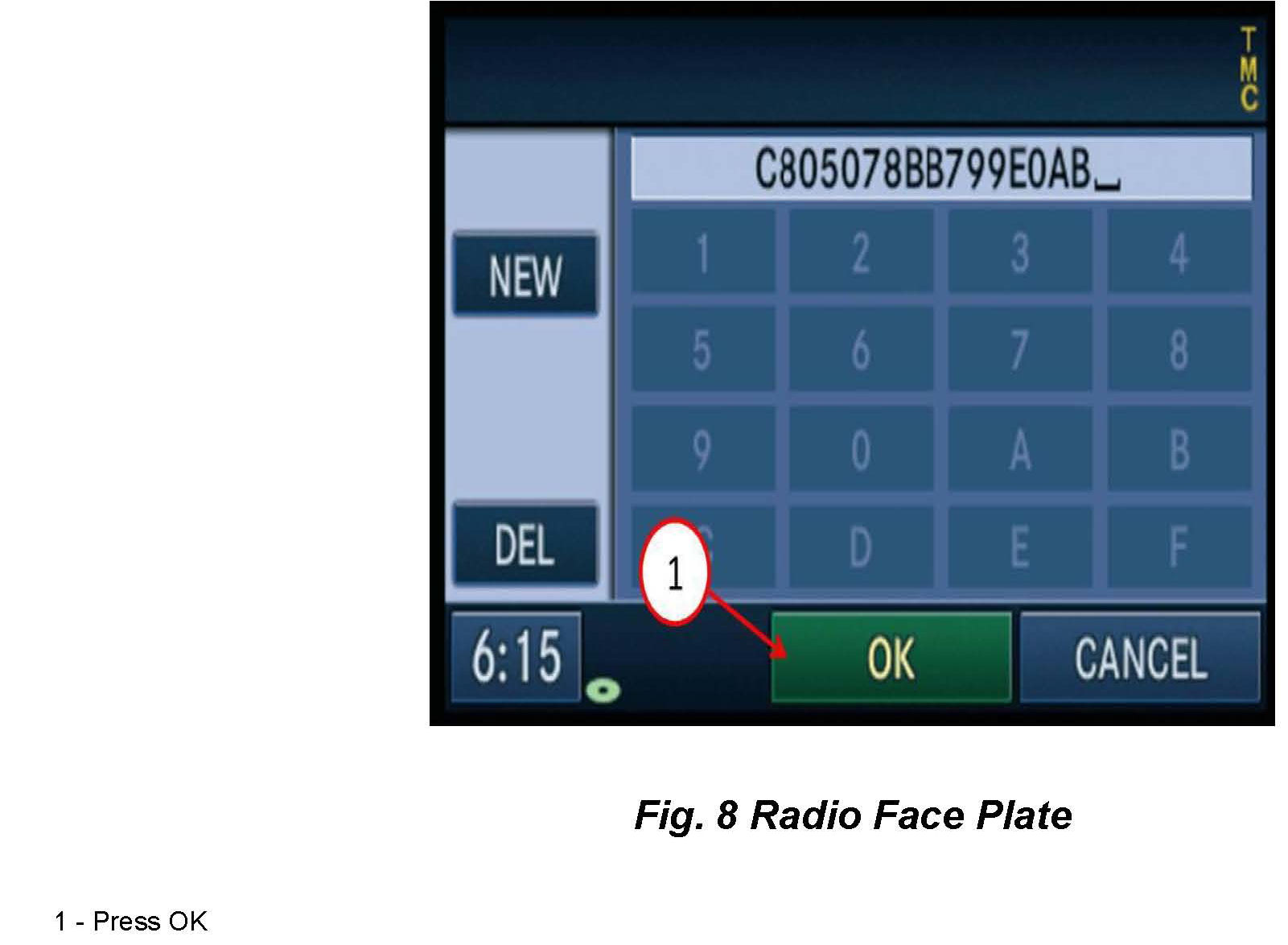 10. The radio will read the contents of disc and will prompt the user to select "OK" or "CANCEL" as shown in the screen below. It may take approximately 2 minutes for this prompt to display (Fig. 5).