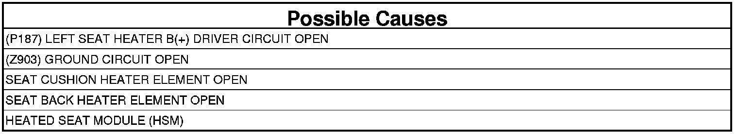 - Repair the (P187) Left Seat Heater B(+) Driver circuit for an open.