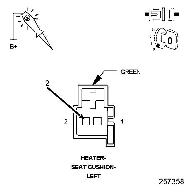 1. Using a 12-volt test light connected to 12-volts, check the (Z903) Ground circuit at the Left Seat Cushion Heater harness connector (harness side).