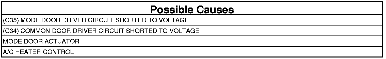 - Repair the (C35) Mode Door Driver circuit for a short to voltage.