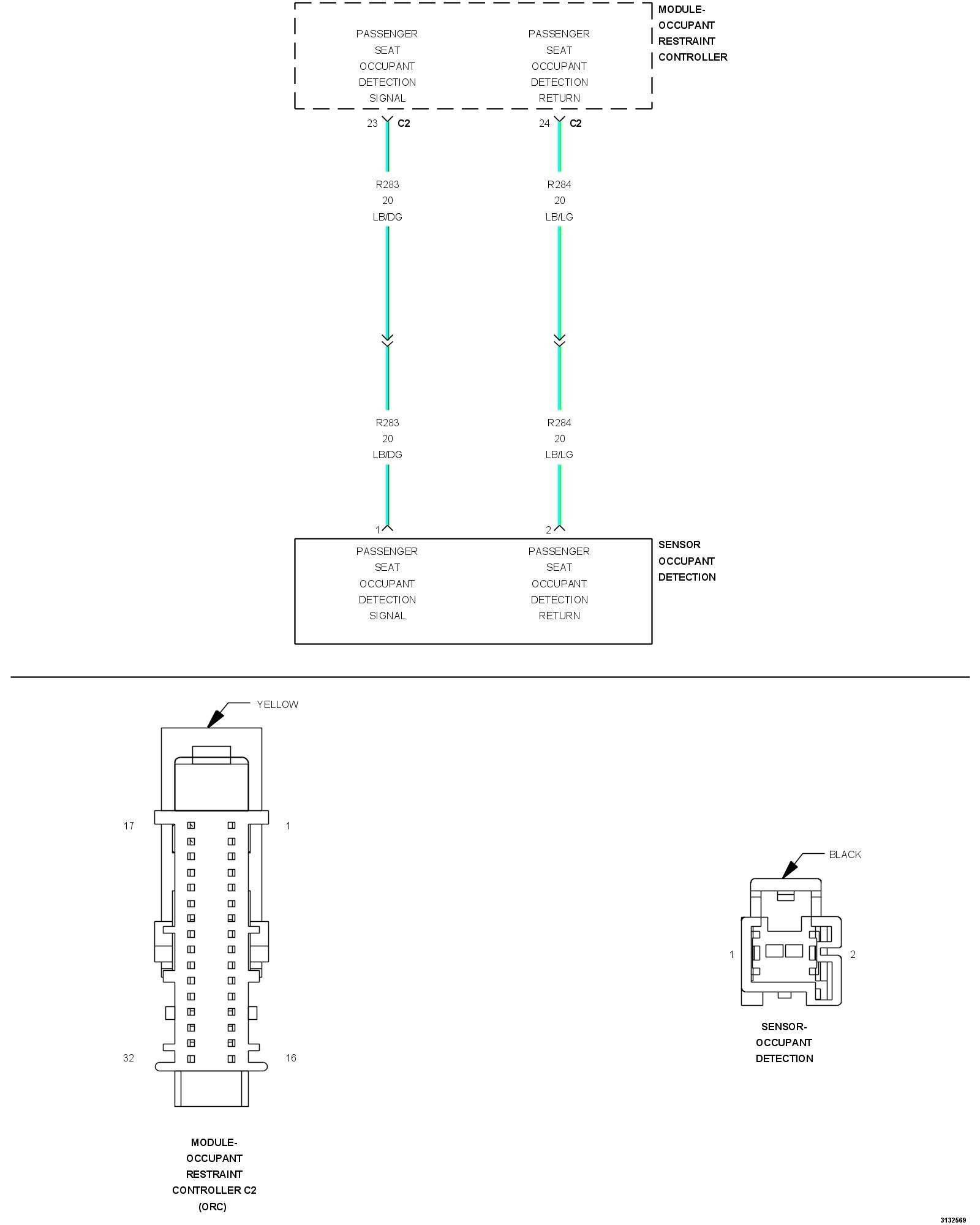 - Repair the (R284) Passenger Occupant Sensor Return circuit for a short to ground.