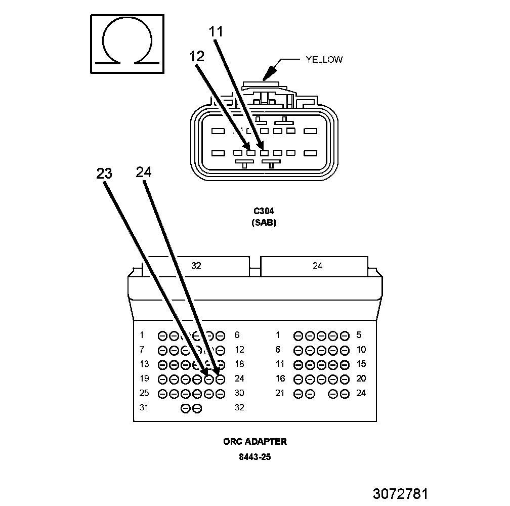 NOTE: Inspect terminal pins and verify the C304 connector is fully seated correctly and that the connector locking tab is correctly in place.