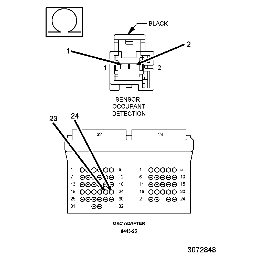 5. Measure the resistance of the (R284) Occupant Detector Sensor Return circuit from cavity 2 of the ODS connector to the 32 way side of the SRS Load Tool Adapter cavity 24.