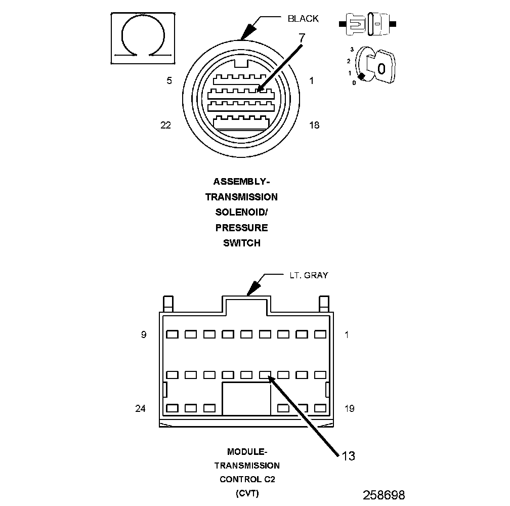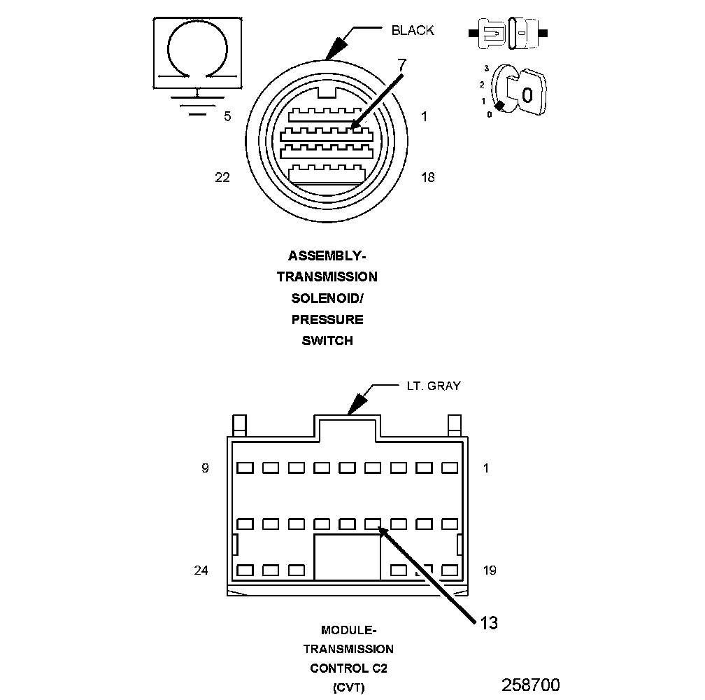 Always perform the CVT Pre-Diagnostic Troubleshooting procedure before proceeding. Initial Inspection and Diagnostic Overview.