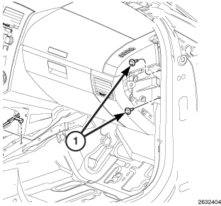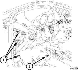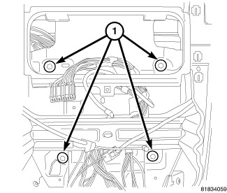 27. Install four fasteners (1) behind center bezel and one behind glove box and tighten to 4.5 Nm (40 in. lbs.).