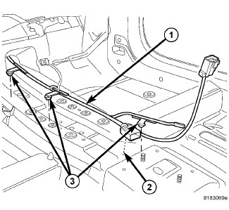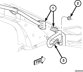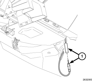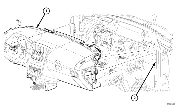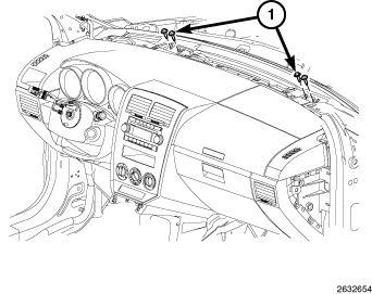 1. Load the instrument panel (1) into vehicle and hang onto the hook support features (2).