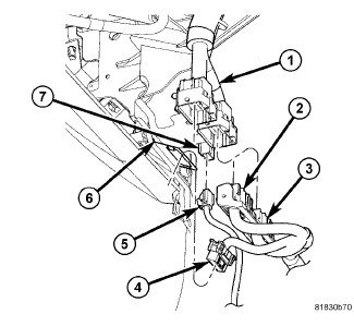 21. Connect instrument panel wire harness (1) and (2) and (3),(7) and (5) located behind cowl panel.