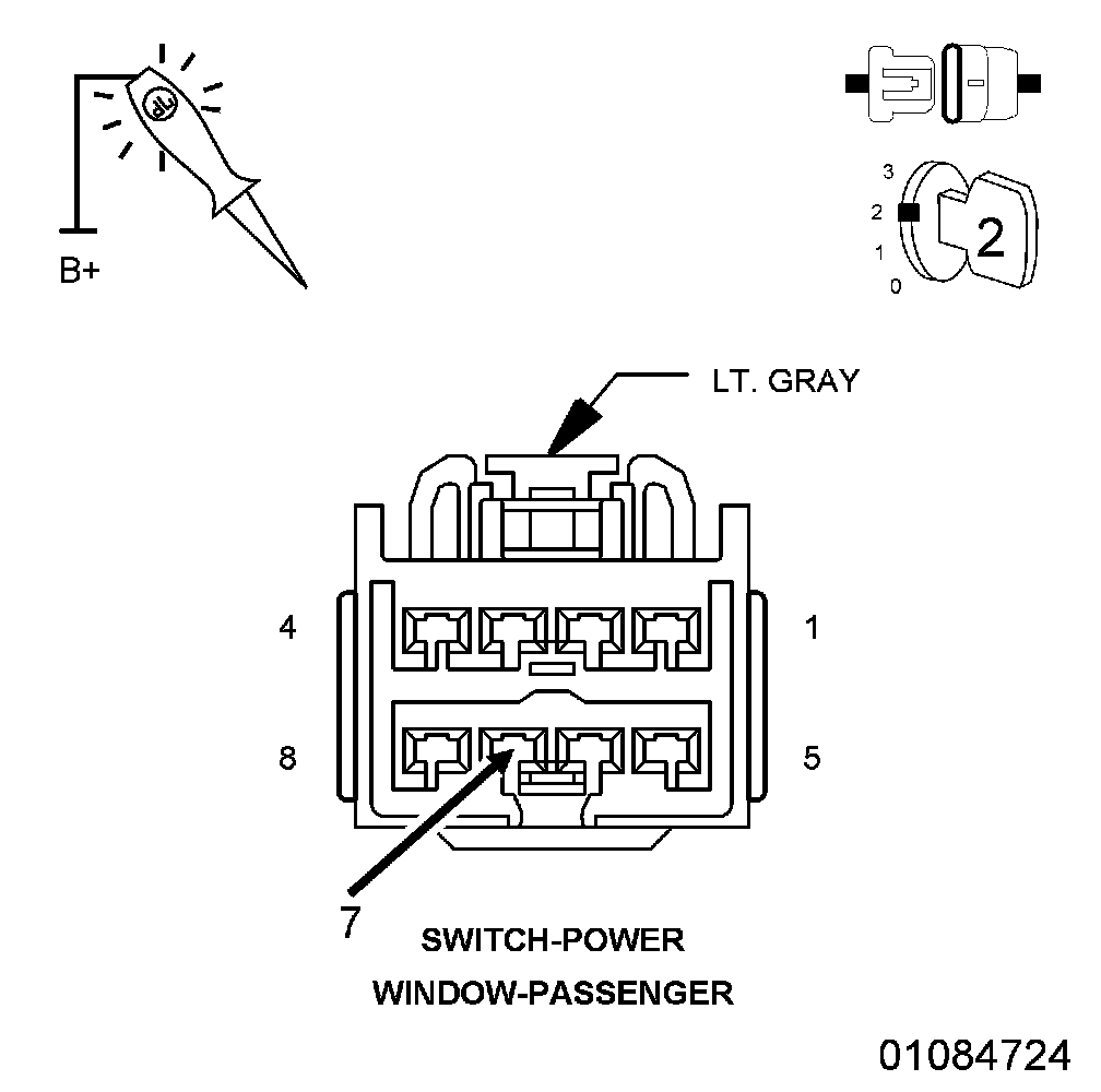 2. Using a 12-volt test light connected to 12-volts, check the (Z960) Ground circuit in the Passenger Window/Door Lock Switch connector.